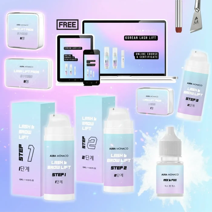Our AURA Monaco Korean Lash Lift Kit is designed for maximum performance, client safety and exceptional visual results. It combines high-quality, gentle formulations with professional-grade lifting power — without harsh odors or the risk of over-processing.