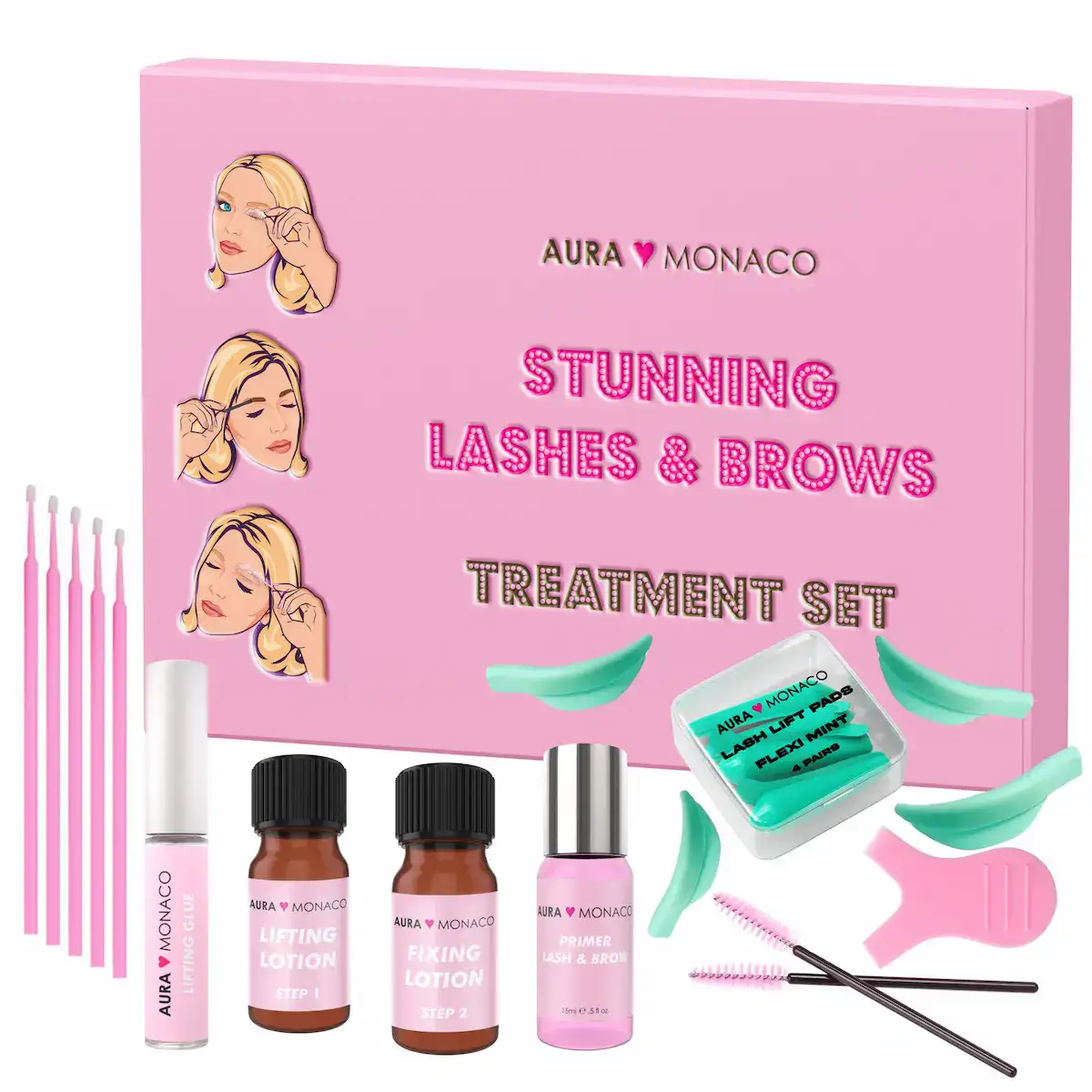 Die besten Lotionen, die wir je hatten. Im günstigen Set. Mit dem AURA Monaco Wimpernlifting erhältst du perfekt geschwungene Wimpern für bis zu 6 Wochen.